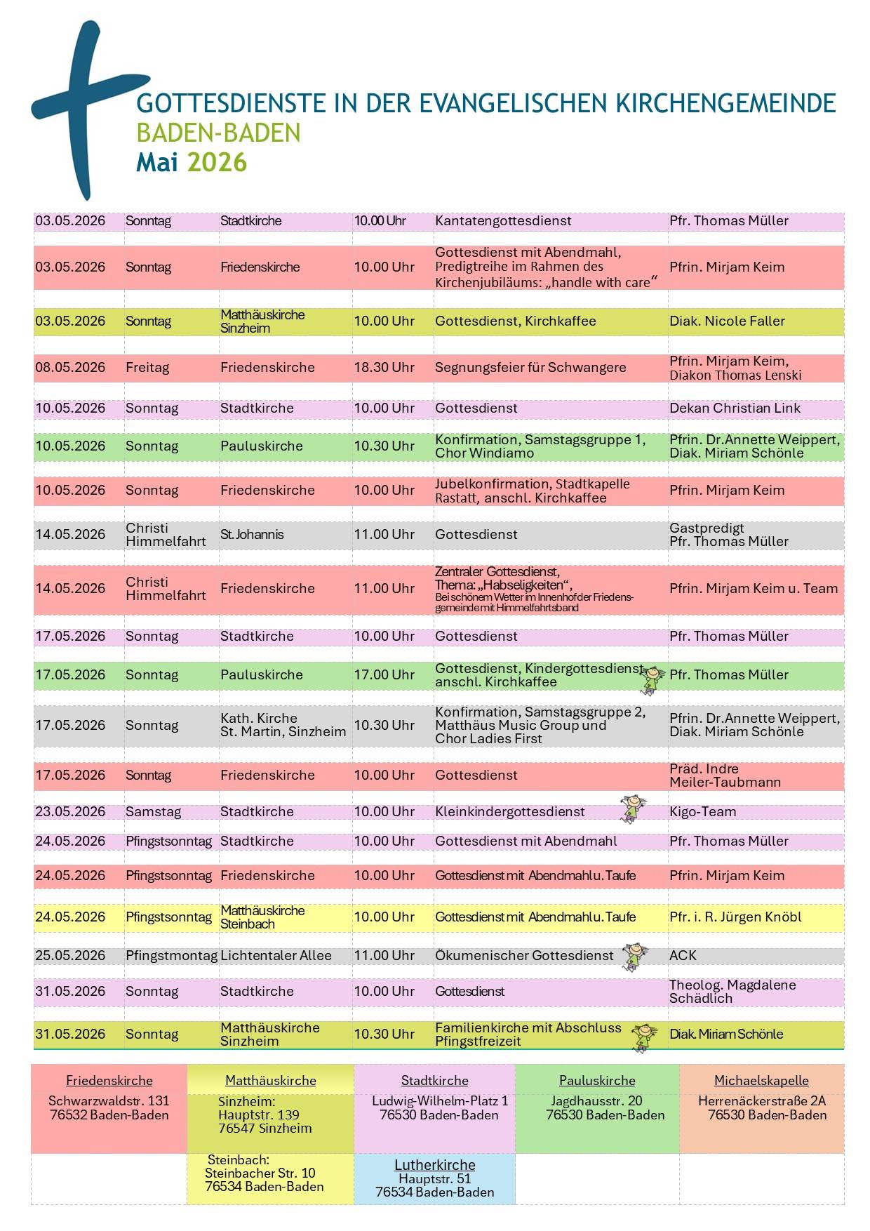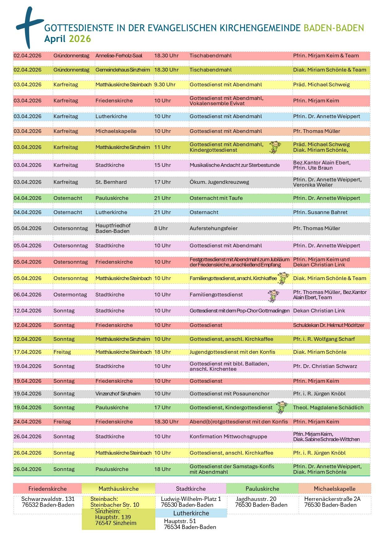Gottesdienste und Veranstaltungen in der Kirchengemeinde Baden-Baden